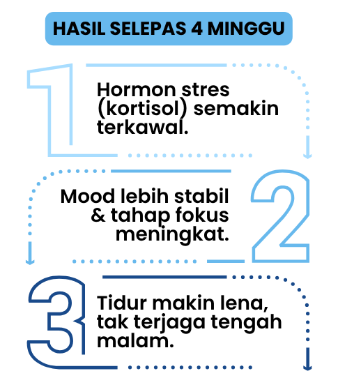 Hasilnya, lebih 85% pengguna melaporkan perubahan positif seawal minggu ke-2, dan mencapai kestabilan penuh menjelang minggu ke-8.